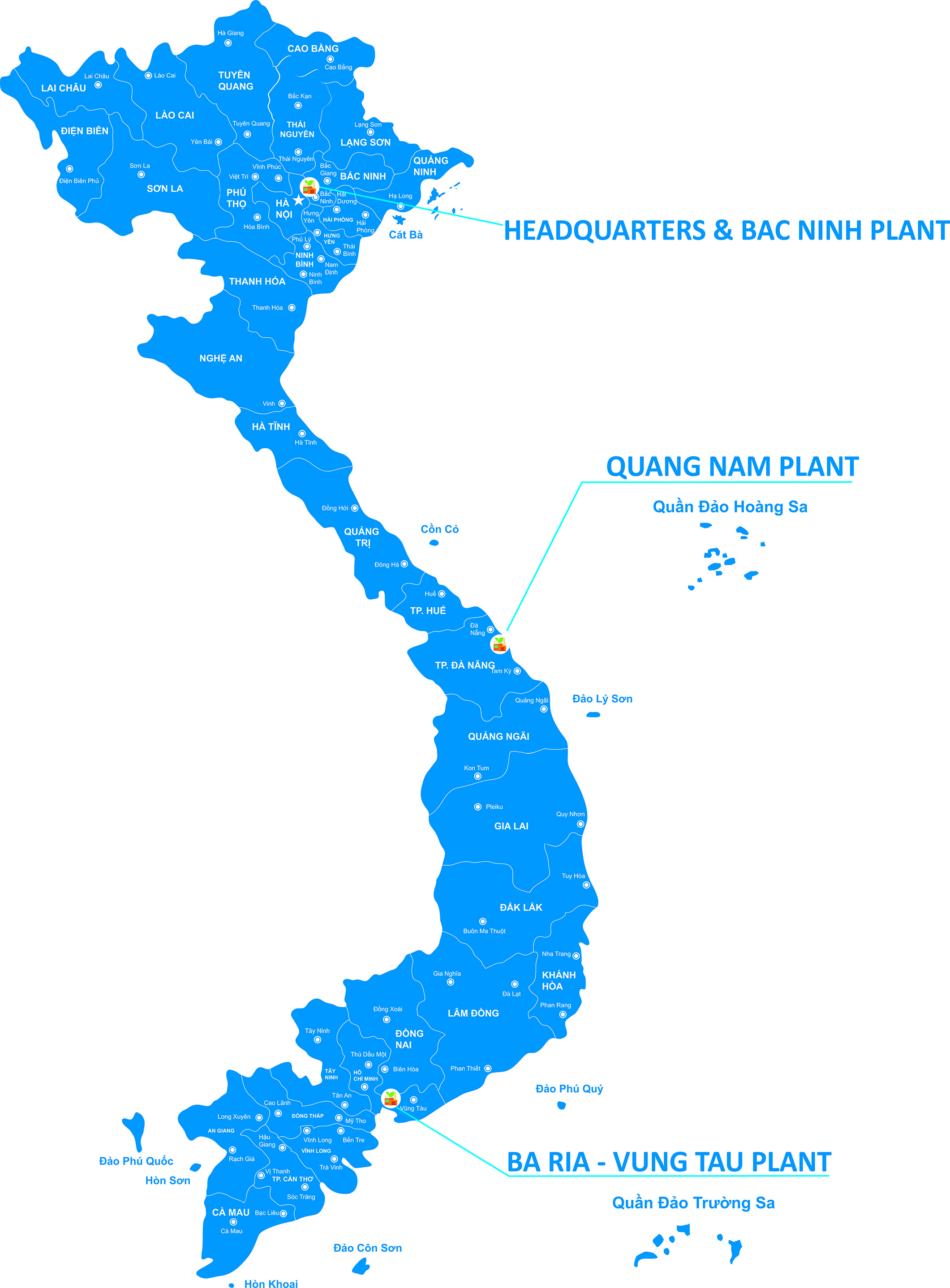 Vị trí TRỤ SỞ CHÍNH & NHÀ MÁY BẮC NINH: KCN Hanaka, Phường Đồng Nguyên, Tỉnh Bắc Ninh NHÀ MÁY QUẢNG NAM: Lô 15, KCN Điện Nam - Điện Ngọc, Phường Điện Bàn Đông, Thành phố Đà Nẵng NHÀ MÁY BÀ RỊA - VŨNG TÀU: Lô VIII-5 + VIII-6, KCN Mỹ Xuân B1 - Tiến Hùng, Phường Phú Mỹ, Thành phố Hồ Chí Minh Chia sẻ: